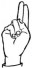 На ћирилици написано МОМИРКА ГЕОРГИЈЕВ састоји се из 16 слова [?]. Исписано ћириличном једноручном азбуком за глувонеме: